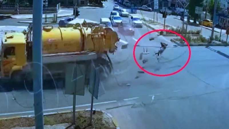 تلفزيون الفجر | لولا فيديو صوّرت مشاهده كاميرا للمراقبة العامة في أحد شوارع العاصمة التركية أنقرة، لما صدق أحد أن اصطدام صهريج تفريغ تابع لبلدية المدينة بسيارة “فان” حال انطلاقها من إشارة المرور، انتزع سائقها من مقعده وأخرجه بقوة من نافذتها، إلى درجة أنه تطاير في الهواء، ثم ارتضّ متدحرجا على الإسفلت إلى حيث ارتطم رأسه بحاجز إسمنتي.