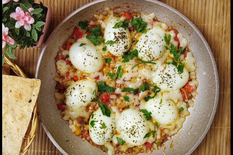 - أحدثي فجوة بالمزيج وضعي فيها البيضة.