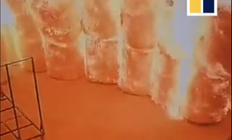 فيديو.. عامل “ملقوف” يتسبب في حريق بالصين