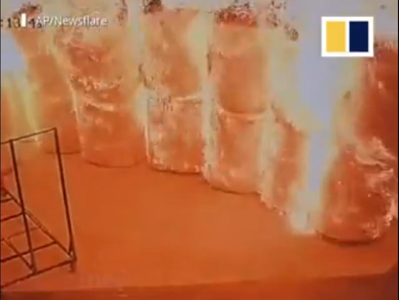 فقد أظهر مقطع فيديو نشره موقع صحيفة “ساوث تشاينا مورنينغ بوست” الصينية، لحظة إقدام عامل على إشعال النار في طرف إحدى لفافات مادة “الفوم” وهي مادة شديدة الاشتعال، لاختبار قدرتها على الاشتعال، بدافع الفضول، كما تقول الصحيفة، وفي لحظات التهمت النيران مخزن المصنع الواقع جنوبي الصين.