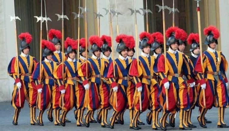 ويبلغ قوام الحرس السويسري، وهي قوة النخبة ذات الزي الملون التي تتولى حماية البابا ومدينة الفاتيكان التي تبلغ مساحتها 108 فدادين، 110 أفراد.