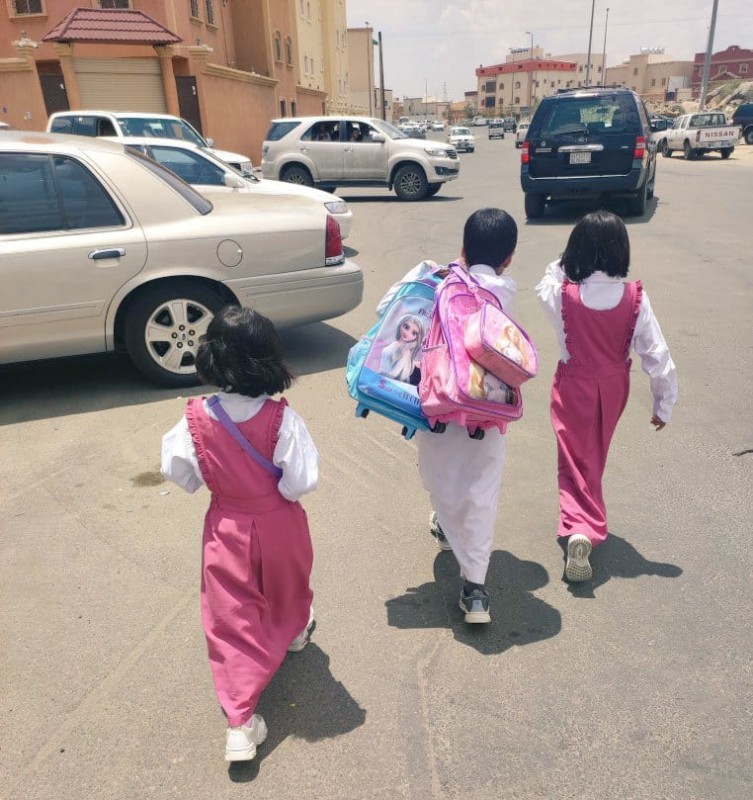 تلفزيون الفجر | تفاعل رواد مواقع التواصل الاجتماعي في السعودية مع صورة يظهر فيها طفل وهو يحمل حقيبة أختيه، في مشهد رائع يجسد مقولة «الأخ سند» وسط إعجاب كبير من المجتمع.