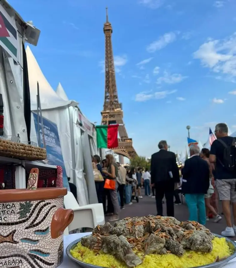 فقد شهدت العاصمة الفرنسية باريس وتحديداً في حديقة برج إيفل العريق، الاحتفال كأول مشاركة للمطبخ الأردني، حيث عرض المطعم أشهر الأطباق الأردنية التي يشتهر فيها الأردن، مثل “المنسف، والمقلوبة، والمكمورة”، وغيرها من الأطباق الشهيرة.