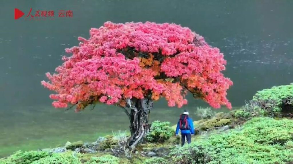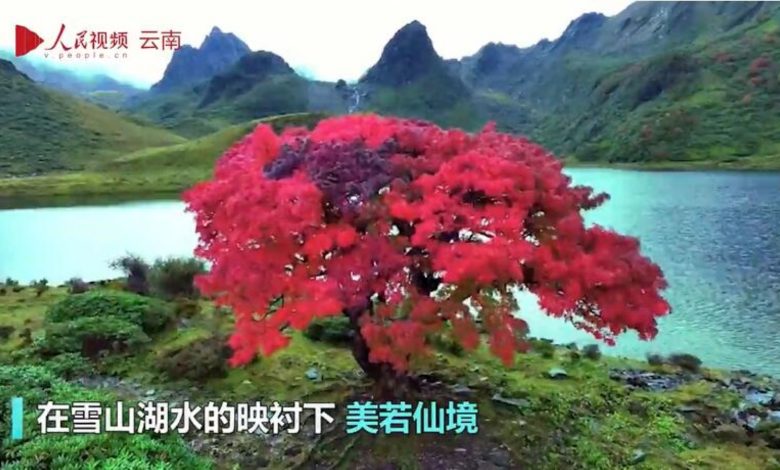تلفزيون الفجر | أثارت شجرة ذات تاج أحمر ناري بجانب بحيرة البحر الأسود على سفح جبل هابا الثلجي في شانغريلا، بالصين مناقشات ساخنة بين مستخدمي الإنترنت في الآونة الأخيرة.