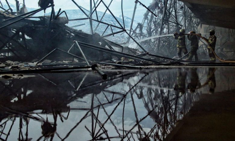 وأظهرت لقطات فيديو ألسنة لهب ودخان يتصاعد من قبة المسجد قبل انهيارها.