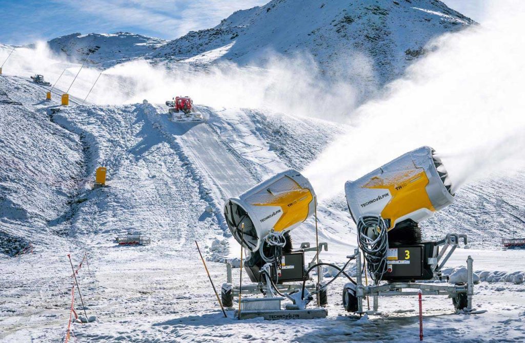 وتجمع أعضاء مجموعة “ماونتين وايلدرنيس” للحفاظ على البيئة في محطة تلفريك هوسبورج في منطقة جارميش كلاسيك للتزلج، للفت الانتباه إلى كمية الطاقة والمياه التي تستهلكها معدات صنع الثلج.