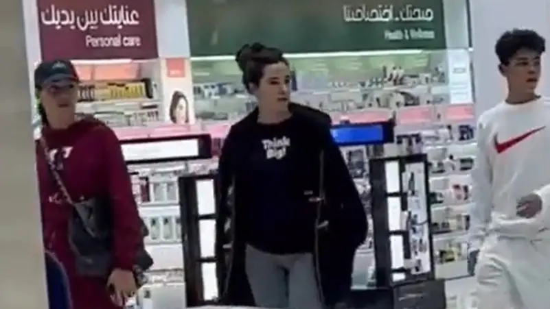 وظهرت جورجينا وهي ترتدي قبعة وملابس رياضية برفقة ابن كريستيانو البكر، وبعض الأشخاص داخل صيدلية في الرياض.