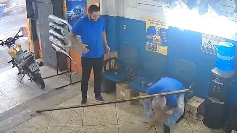 ففي إحدى ورش تبديل الإطارات في البرازيل، قرر موظّف يبدو أنه جديد في المكان، أن يبادر ببدء العمل، فما كان منه إلا أن سحب عموداً حديدياً مخصصاً لسند جدار الباب وثبته كالعادة.