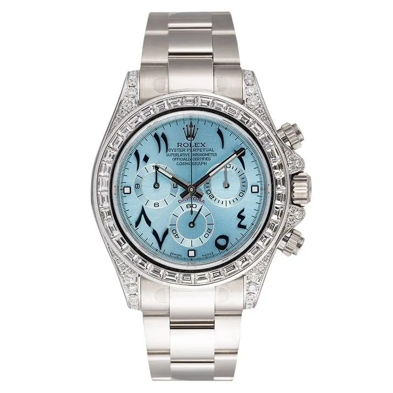 وأوضح “عالم الساعات” أن الساعة البلاتينيوم المتزينة بأرقام عربية، يقدّر سعرها ما يقارب الـ 650,000 ألف ريال سعودي، كما كان ظهورها الأول بنسختها العادية عام 1963 بتصميم يلبي احتياجات سائقي سيارات السّباق المحترفين. وبسبب أدائها العالي ومقياس تاكيمتري وثلاثة عدّادات، تسمح الساعة لمستخدمها قياس الوقت المنقضي، بجانب أن إطارها مقاوم للصدأ ومضاد للخدش ولا يتضرر لونه بالأشعة فوق البنفسجية، وهو مصنوع من السيراميك ومطلي بطبقة رقيقة من الذهب أو البلاتين.