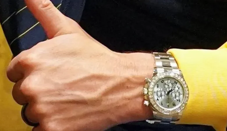 اقتنص رونالدو اختيارات توحي بتناغمه مع طبيعة المكان الذي يحضر به، ولذا انتقى ساعة مميزة وفريدة. وفي هذا الصدد قال صاحب حساب “عالم الساعات” لـ”العربية.نت” بأن الساعة التي ارتداها رونالدو من ماركة “رولكس” هي “كوزموغرافدايتونا”، مطعّمة بالألماس بتصميم الباغيت، الشائع في المجوهرات والخواتم والساعات، وسُمي بهذا نسبة للخبز الفرنسي الشهير، وهو ماس صغير يكون مستطيلا أو مربعا، وحوافه مستقيمة أو مدببة وجوانبه طويلة.