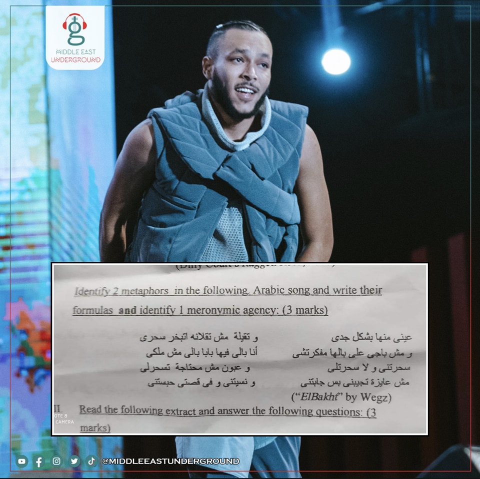 على الرغم من تحقيقها شهرة واسعة، إلا أن مغني الراب “ويجز” لم يكن ليتوقع أن تكون أغنيته “البخت” أساسا لسؤال في امتحان مادة الترجمة بكلية “ألسن” بجامعة عين شمس في مصر.