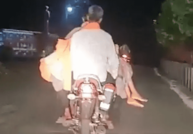 ويظهر الفيديو الأب المكلوم واسمه لاكسمان سينغ، حاملا جثة ابنته ذات الـ 13 ربيعا، على دراجته النارية في ساعة متأخرة من الليل.