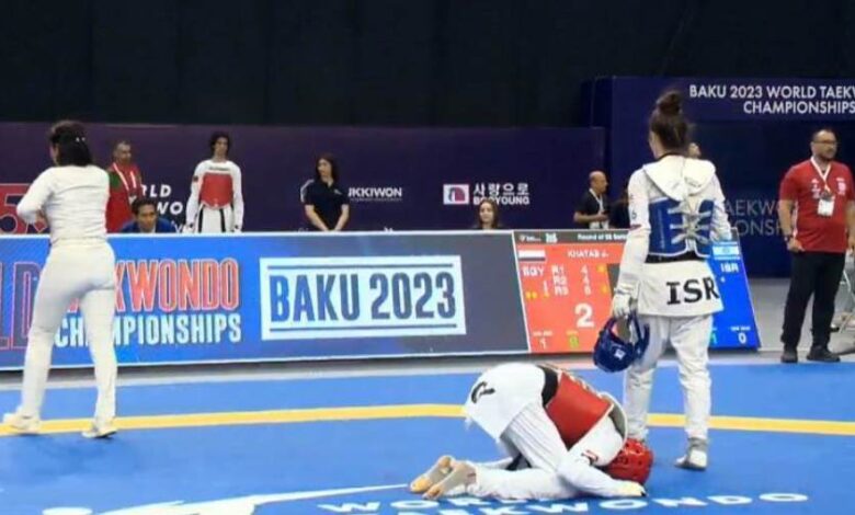 فوز بطلة منتخب مصر جنى خطاب على لاعبة إسرائيل في بطولة العالم للتايكوندو