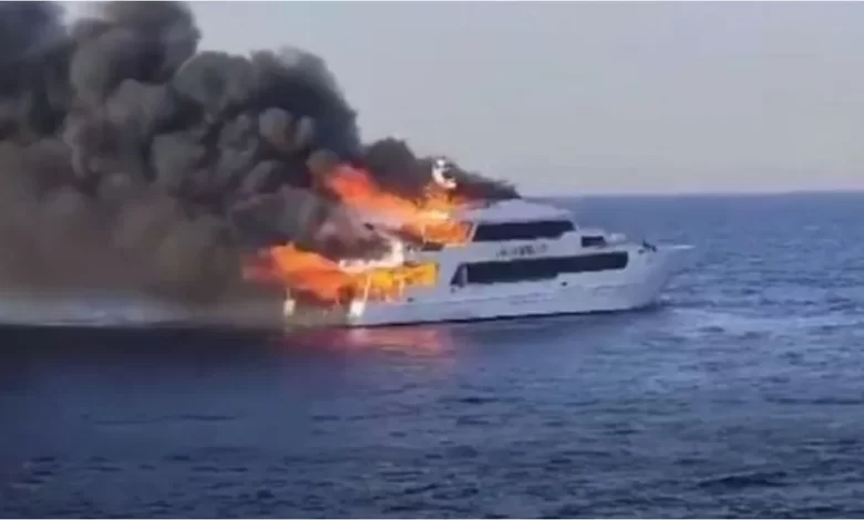 فيديو: فقدان 3 سياح بريطانيين بعد احتراق مركب سياحي بمصر