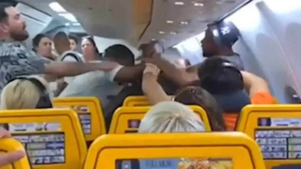وتُظهر اللقطات التي تم تصويرها على متن طائرة تابعة لشركة “رايان إير” متجهة من مالطا إلى مطار “ستانستيد” في لندن راكبين يتقاتلان بينما يحاول الآخرون فصلهما عن بعضهما البعض.