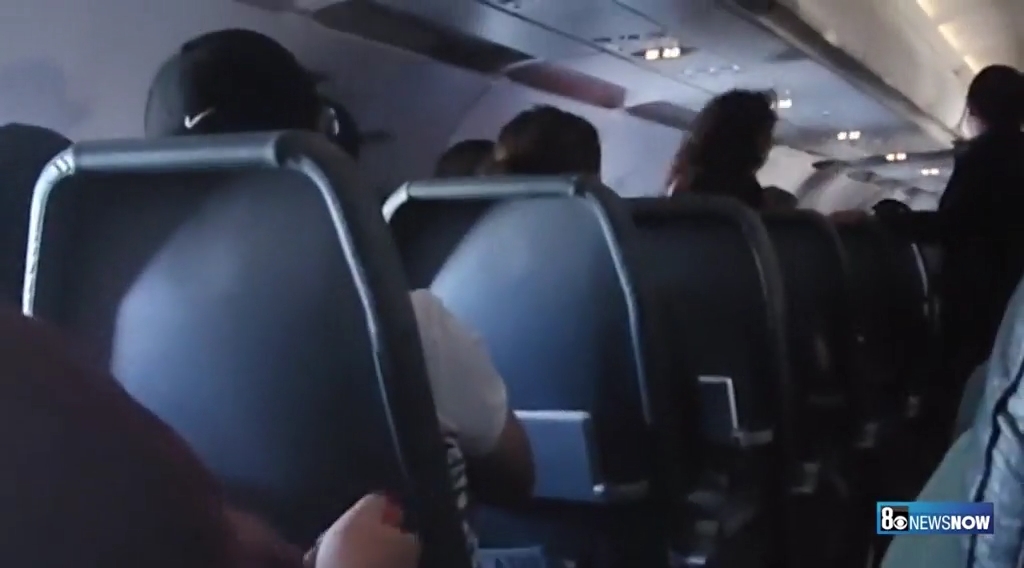 ويُظهر مقطع فيديو سجله راكب آخر امرأة ترتدي قميصاً أحمر اللون تصرخ بصوت عالٍ وتضرب ذراعيها بينما كان الركاب الآخرون يحاولون إسكاتها.