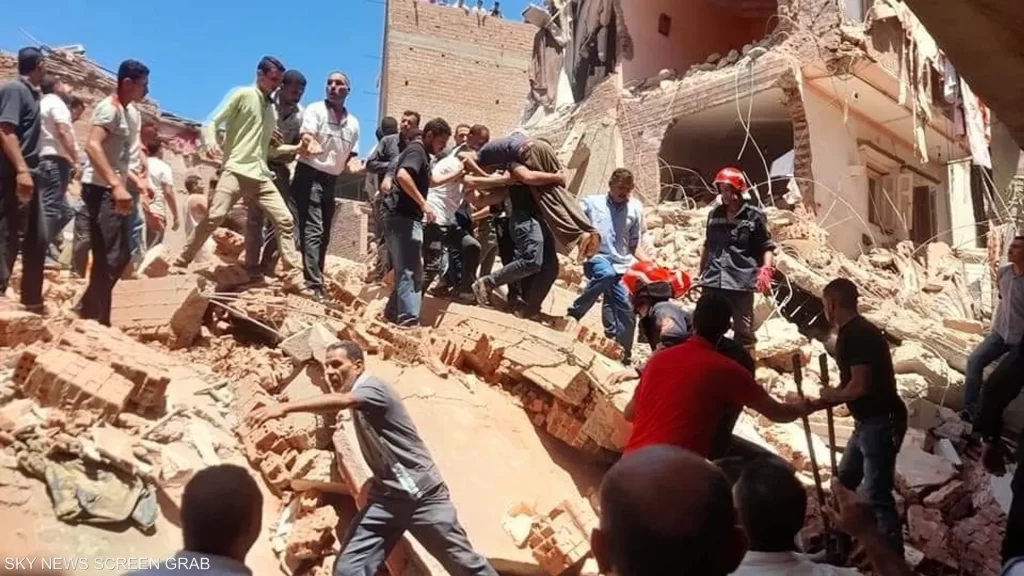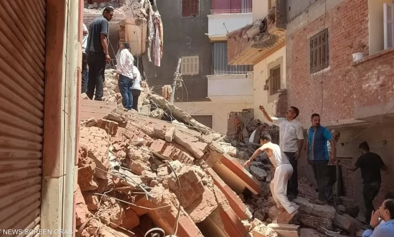 بالصور .. قتيلان و9 مصابين في انهيار مبنى بالبحيرة شمالي مصر