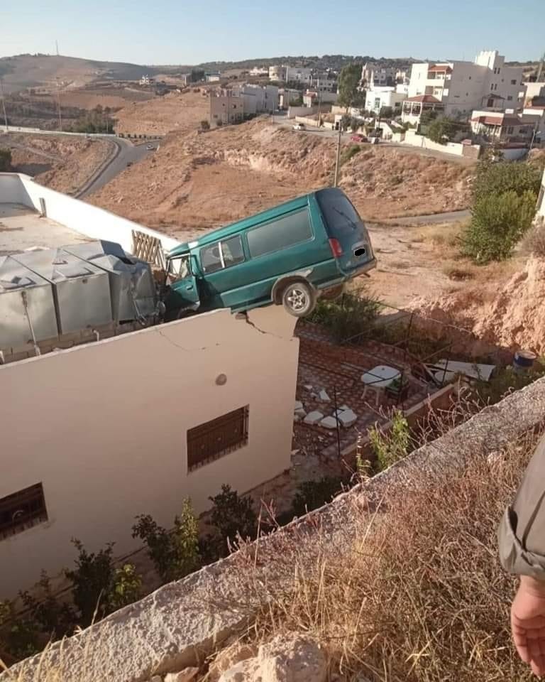 وقع حادث سير غريب من نوعه في محافظة الكرك، الخميس، لتدهور مركبة “باص صغير”
