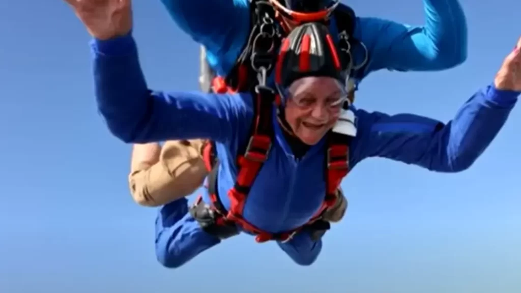 وأدت القفزة التي تم ترتيبها للجدة كهدية في عيد ميلادها من على ارتفاع 12 ألف قدم دون أي مشاكل.