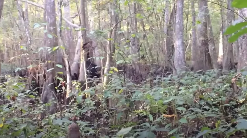 وصرح الصياد: “كنت في الخارج لاصطياد الخنازير أجلس في جزء من المستنقع، ثم سمعت ضوضاء خلف شجرة، لم أستطع تصديق عينيي. كان هذا الشيء الأسود الضخم جاثما بجوار شجرة سرو ميتة على بعد حوالي 50 ياردة”.