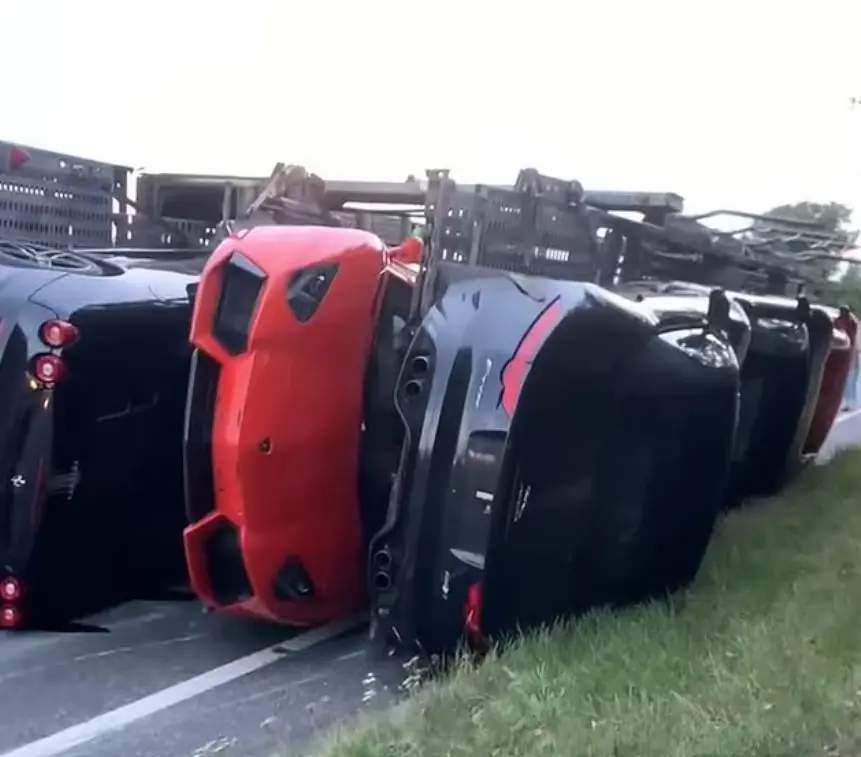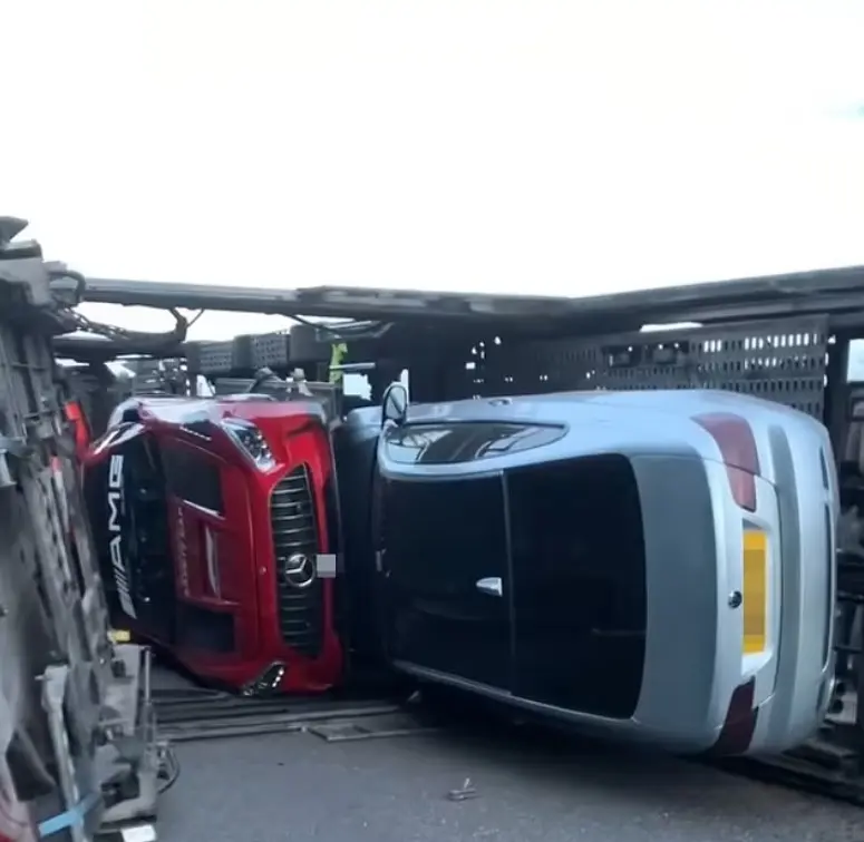 حادث مأساوي شهدته إحدى الطرق البريطانية، بحسب ما أوردته صحيفة “ديلي ميل” Daily Mail. فقد انقلبت شاحنة نقل تحمل 9 سيارات فاخرة تشمل سيارات من طراز أستون مارتن ولامبورغيني على طريق مزدوج مزدحم.