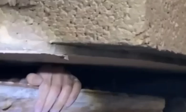 وسمع صوت أحدهم في المقطع يقول “حجة خلي إيديك على الكشاف”، طالباً منها وضع يدها تحت الكشاف لكي يستطيع المنقذون رؤيتها.