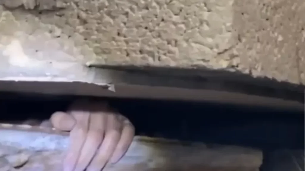 وسمع صوت أحدهم في المقطع يقول “حجة خلي إيديك على الكشاف”، طالباً منها وضع يدها تحت الكشاف لكي يستطيع المنقذون رؤيتها.