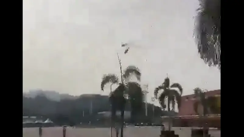 وبدا أن إحدى المروحيات احتكت بشفرات الدوار الخلفي لطوافة أخرى، ما تسبب بخروجهما عن السيطرة وسقوطهما، إلى أن تحطمتا في مكان غير ظاهر في الفيديو. وسمعت أصوات شهود عيان في المكان وهم يردّدون “الله، الله، الله”.