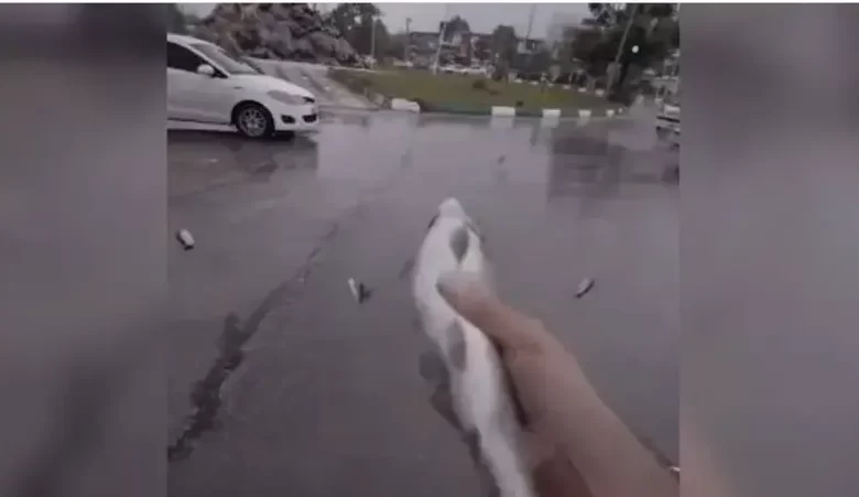 وأظهر مقطع فيديو وثقه إيرانيون، وتم تداوله على نطاق واسع على مواقع التواصل الاجتماعي، سقوط عشرات الأسماك على طريق يشهد حركة سير داخل المدينة.
