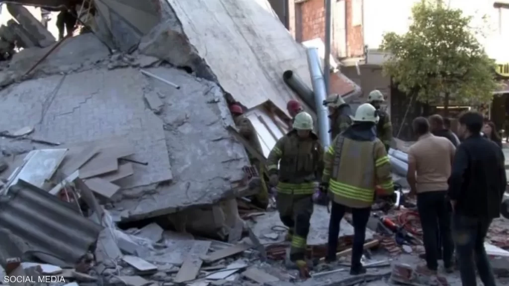 وذكرت قناة (سي إن إن تورك) أنه تم انتشال شخصين مصابين من تحت الأنقاض