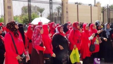بالصور: مطلقات ببورسعيد يرتدين ملابس حمراء ويطالبن بإعدامهن