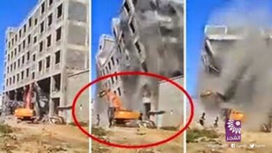 لحظة انهيار مبنى متعدد الطوابق على العمال .. فيديو رهيب