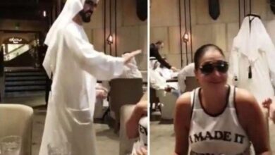 حاكم دبي الشيخ محمد بن راشد آل مكتوم يداعب الفنانة المصرية غادة عبد الرازق