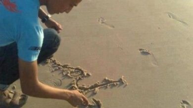 صورة: “عساف” يرسم حلمه على شواطىء غزة