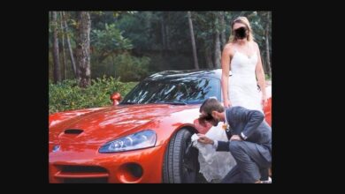 يستخدم ثوب زفاف عروسه لتنظيف عجل السيارة!