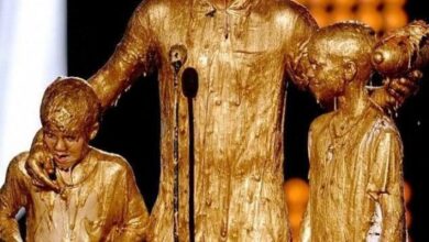 ديفيد بيكهام يتسلّم جائزة وهو مغطّى بالذهب مع طفليه
