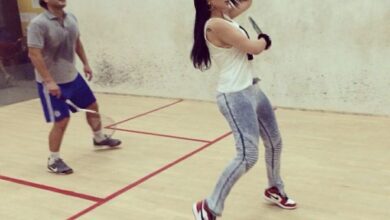 هيفاء وهبي تستعرض مواهبها في الاسكواش