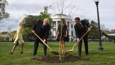 شجرة زرعها ماكرون وترمب ماتت.. وفرنسا ترسل بديلة عنها