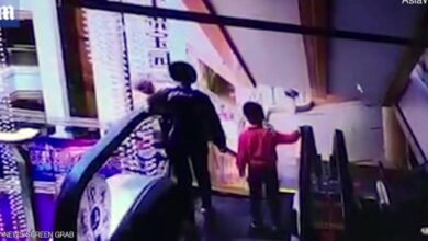 كارثة على السلالم المتحركة.. أم تفقد توازنها و”رضيعها”