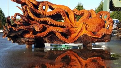 فنان ينحت شجرة على شكل أخطبوط عملاق