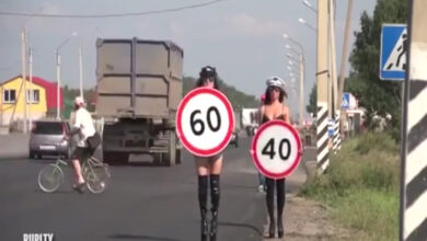 روسيتان تعرّتا في الشارع لحث السائقين على تخفيف سرعتهم