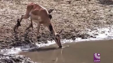 بالفيديو: غزال ينجو من أنياب تمساح ضخم