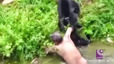 شاهد.. قردان يصارعان رجلا فى بركة مياة