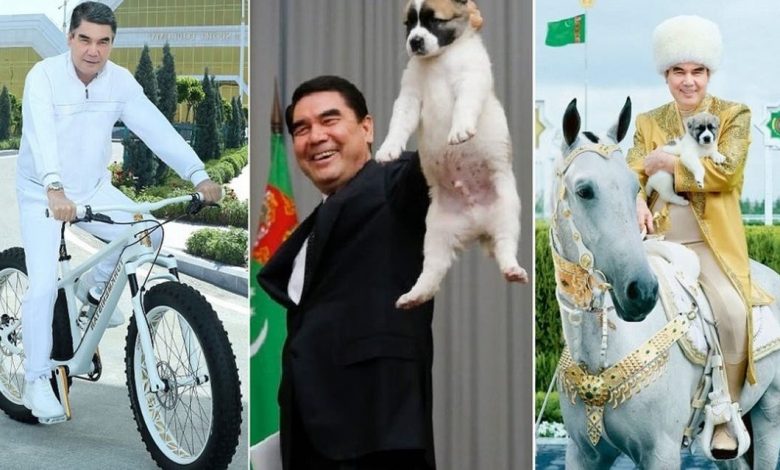 كما أمر الرئيس الذي أصدر عملة خاصة لتكريم سلالة كلاب يحب نوعها، ومعروفة باسم Alabai في تركمانستان، بنحت تمثال لكلبه المفضل، نصبوه في أهم جادة بالعاصمة، وفي إحدى المرات حمل كلبا من السلالة وأهداه للرئيس الروسي فلاديمير بوتين، وحمله بيده من أذنيه في صالون الاجتماع.