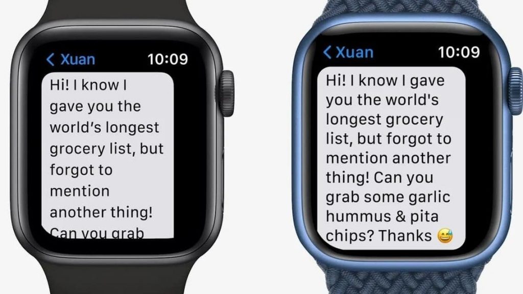وبينما قد يمثل فرق حجم الشاشة بين الساعتين سببًا مغريًا للبعض للحصول على الجيل السابع، إلا أن هذا الحجم يتسبب في مشكلة عند شراء الملحقات وأحزمة الساعة.