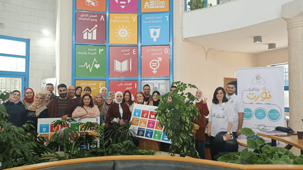 من جانبه تحدث المشارك حازم المصري 24 عاماً من جامعة الأقصى في قطاع غزة، عن أهمية برنامج “نورت” في مجتمعنا الفلسطيني التي وصفها بالرائعة وأضافت له معلومات جديدة كلياً لم يكن يدركها، حيث استطاع مع فريقه تصميم مبادرة مجتمعية مرتبطة بالهدف الثالث من أهداف التنمية المستدامة (ضمان تمتع الجميع بأنماط عيش صحية والرفاهية في جميع الأعمار) والتي تقوم في مجال الصحة النفسية نظراً لطبيعة الحروب التي يخوضها الشعب الفلسطيني في القطاع.