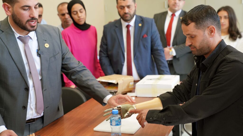 من جانبه، أوضح المدير الفني لمصنع الأطراف الصناعية الأستاذ وليد أبو سمرة أن هذه اليد تتميز باستخدام تقنيات متقدمة، مثل أجهزة استشعار الإشارات العصبية، وخوارزميات الذكاء الاصطناعي، مما يمكنها من فهم نوايا المستخدم بدقة وتحويلها إلى حركات طبيعية، مما يتيح تحكمًا مستقلًا في حركة كل إصبع بفضل خمسة محركات خطية دقيقة، مشيرا إلى تحمل اليد “OHand” حمولة ثابتة تصل إلى 20 كغم لليد بالكامل و5 كغم لكل إصبع، حيث أن وزنها يصل إلى 500 جرام فقط مما يجعلها قوية وفعالة وخفيفة الوزن.