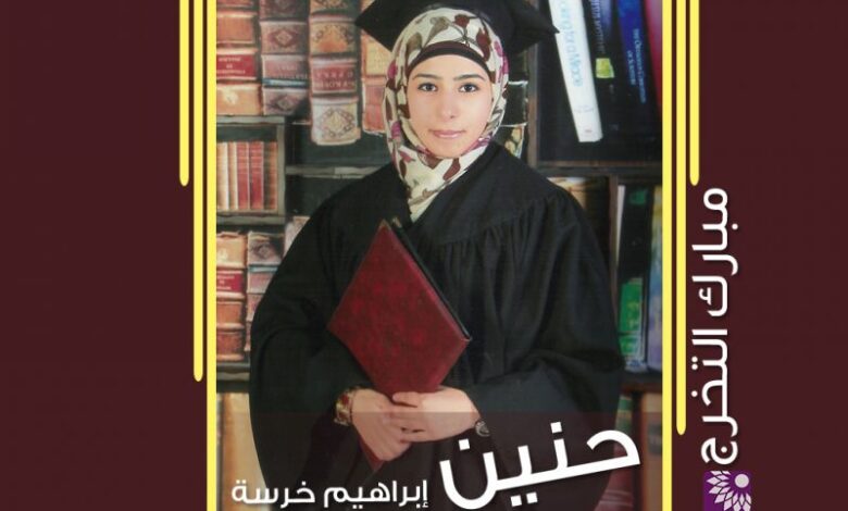 تخرج حنين ابراهيم خرسة بكالوريوس تخصص Biotechnology جيد جداً – جامعة النجاح