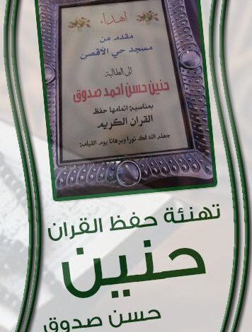 بمناسبة حفظها لكتاب الله الكريم عز وجل