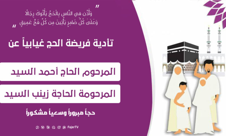 تأدية فريضة الحج غيابياً عن المرحوم الحاج أحمد السيد والمرحومة الحاجة زينب السيد
